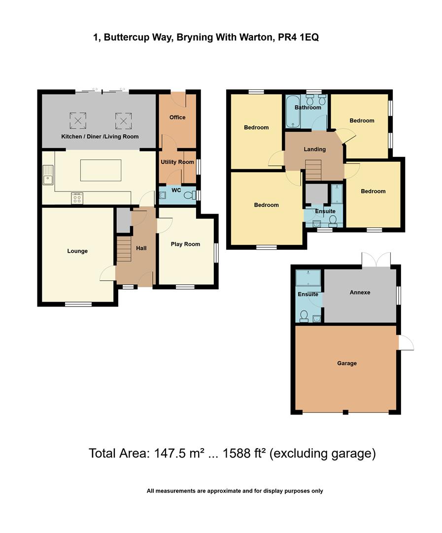 Location - This deceptively spacious extended four bedroomed detached family property was constructed by Taylor Wimpy on this small development known as Meadows View. Buttercup Way is situated just off Harbour Lane and this particular property stands on a large plot at the entrance to the development with views of the landscaped communal gardens opposite. Being within minutes to the centre of Warton with its primary schools and local shopping facilities with transport services running to Lytham St Annes and Preston. BAE Systems is also within easy reach and the M55 motorway junction just a short driving distance away giving access to Manchester and The Lakes. Viewing essential.
