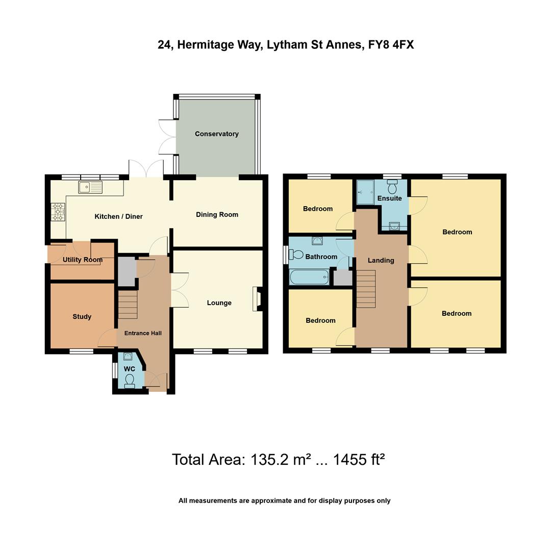 First Floor Landing - 5.59m x 2.06m (18'4 x 6'9) - Spacious central Landing area approached from the previously described staircase with a matching spindled balustrade. UPVC double glazed window to the front elevation provides excellent natural light. Top opening light and fitted blinds. Corniced ceiling. Access to the part boarded loft space via a folding timber ladder. Single panel radiator. Matching white panelled doors leading off.